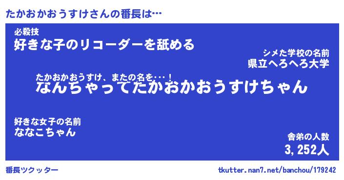 | 肩書あだ名 | 『たかおかおうすけ店長』 |