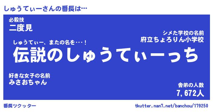 | 伝説のあだ名 | 『伝説のスナイパーしゅうてぃー』 |