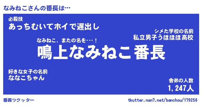 | 意味不明あだ名 | 『ペロリンなみねこ』『永久保存なみねこ』 |