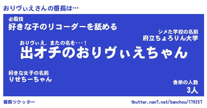 | ヘコむあだ名 | 『おりもー』『酢こんぶ』『おりを』 |