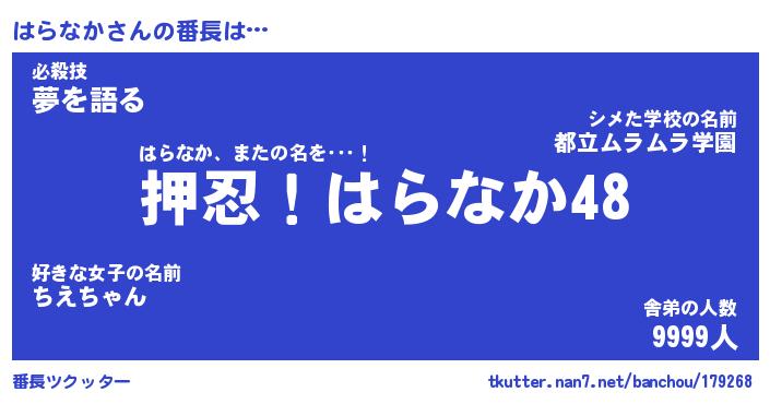| 意味不明あだ名 | 『ペロリンはらなか』『永久保存はらなか』 |