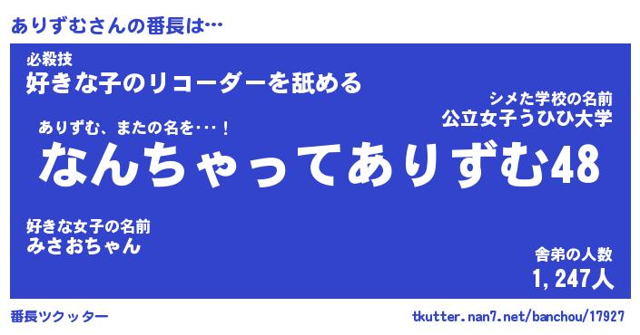 | 意味不明あだ名 | 『ペロリンありずむ』『永久保存ありずむ』 |