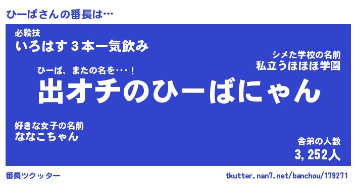 | 肩書あだ名 | 『ひーば御曹司』『ひーば総理大臣』 |