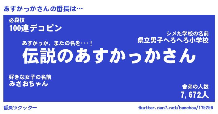 | 伝説のあだ名 | 『伝説のスナイパーあすかっか』 |