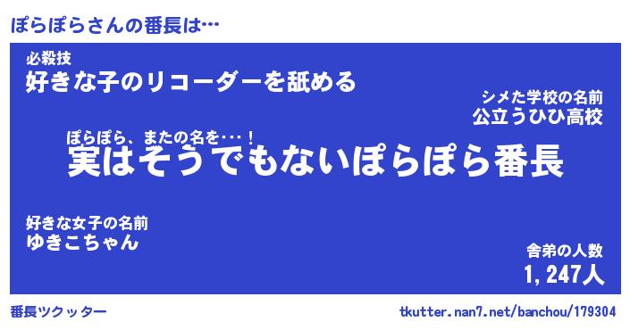 | 欧米人風あだ名 | 『マイケルぽらぽら』『ウサインぽらぽら』 |