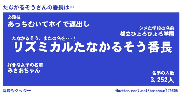 | ポケモン風あだ名 | 『タナチュウ』『タナカダネ』 |