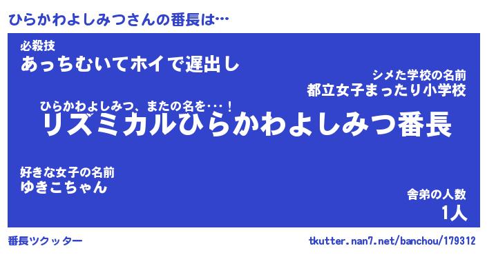 | 意味不明あだ名 | 『ペロリンひらかわよしみつ』 |