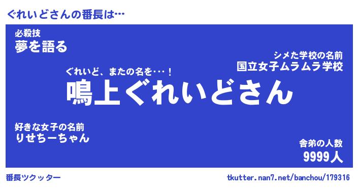 | 肩書あだ名 | 『ぐれいど社長』『ぐれいど大統領』 |