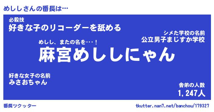 | 意味不明あだ名 | 『ペロリンめしし』『めししフォーエバー』 |