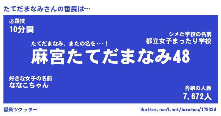 | ヒーロー風カッコイイあだ名 | 『スーパータテダマナミ』『魔戒騎士タテ』 |