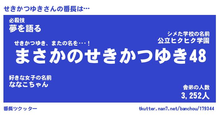 | 男性向けラノベタイトル風あだ名 | 『せきかつゆきの憂鬱』 |