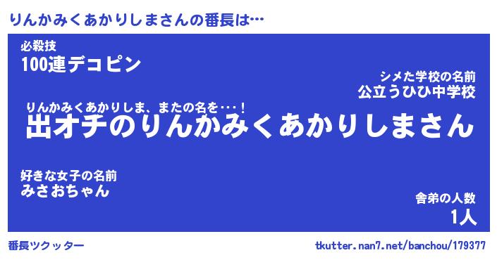 | 伝説のあだ名 | 『伝説のスナイパーりんかみくあかりしま』 |