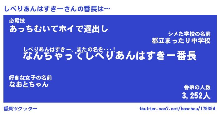 | 伝説のあだ名 | 『伝説のスナイパーしべりあんはすきー』 |