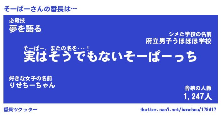| ポケモン風あだ名 | 『ソーチュウ』『ソーパダネ』 |