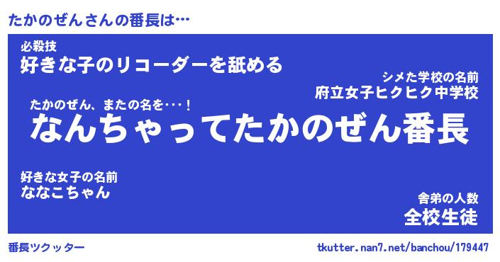 | 肩書あだ名 | 『たかのぜん社長』『たかのぜん国家主席』 |