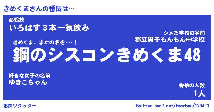 | 意味不明あだ名 | 『ペロリンきめくま』『永久保存きめくま』 |