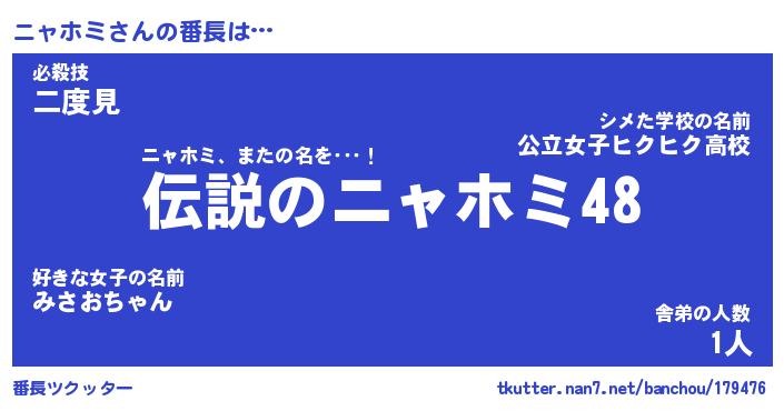 | 肩書あだ名 | 『ニャホミ社長』『ニャホミ国家主席』 |