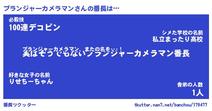 | 意味不明あだ名 | 『ペロリンプランジャーカメラマン』 |