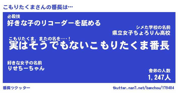 | 伝説のあだ名 | 『封印されしスナイパーこもりたくま』 |