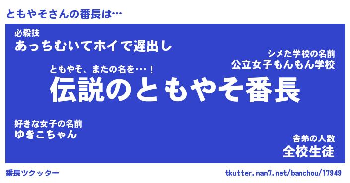 | 意味不明あだ名 | 『ペロリンともやそ』『永久保存ともやそ』 |