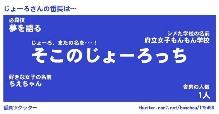 | 2回繰り返すあだ名 | 『じょじょ』『じじょょ』『いじいじ』 |