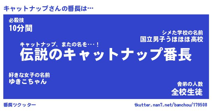 | 伝説のあだ名 | 『伝説のスナイパーキャットナップ』 |