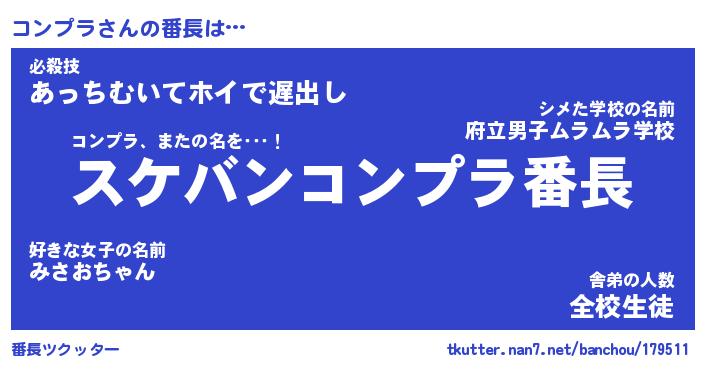 | ツイッター | コンプラさんのツイッターID『katatsumuri_kun』 |