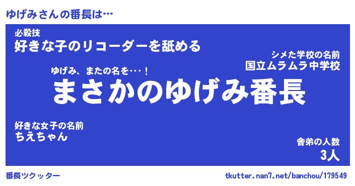 | 肩書あだ名 | 『ゆげみ御曹司』『ゆげみ国家主席』 |