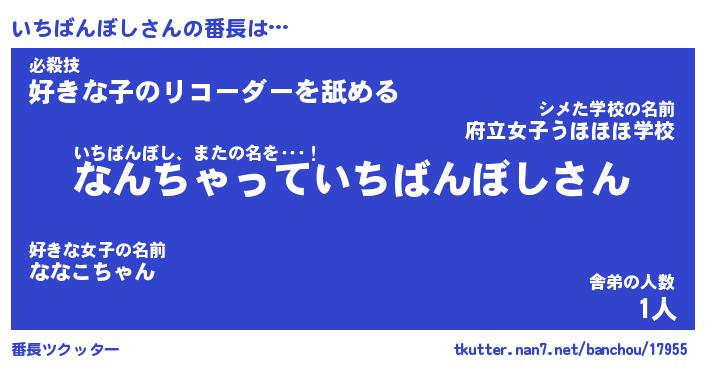 | ポケモン風あだ名 | 『イチチュウ』『イチバダネ』 |