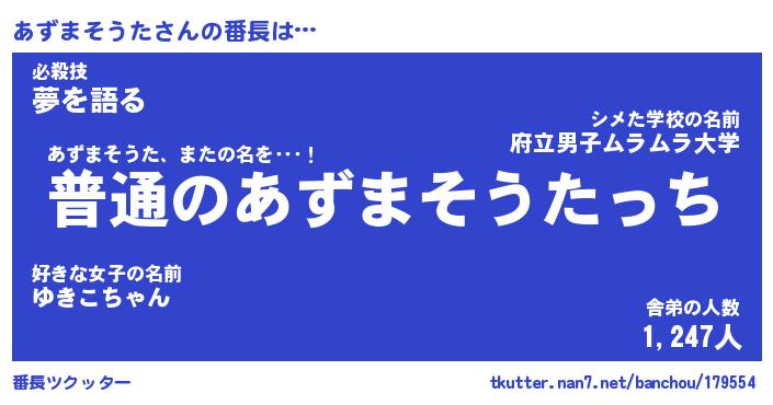 | ポケモン風あだ名 | 『アズチュウ』『アズマダネ』 |