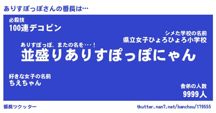 | ヒーロー風カッコイイあだ名 | 『スーパーアリスポッポ』『天弓騎士アリ』 |