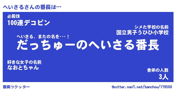 | ピコ太郎風あだ名 | 『ヘコ八郎』『ピヘ一郎』『ヘイ二郎』 |