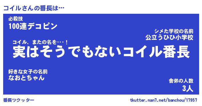 | 意味不明あだ名 | 『ペロリンコイル』『コイルフォーエバー』 |