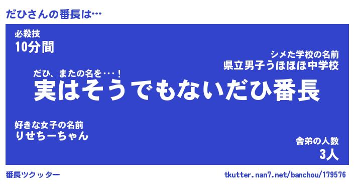 | ヘコむあだ名 | 『だひっふぃ~』『牛乳』『だひを』 |