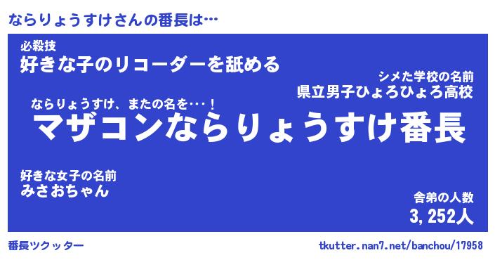 | 肩書あだ名 | 『ならりょうすけ御曹司』 |