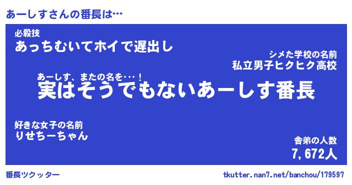 | 意味不明あだ名 | 『ペロリンあーしす』『永久保存あーしす』 |