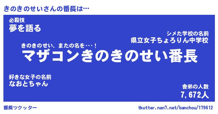 | ヘコむあだ名 | 『きのっふぃ~』『つくし』『きのを』 |