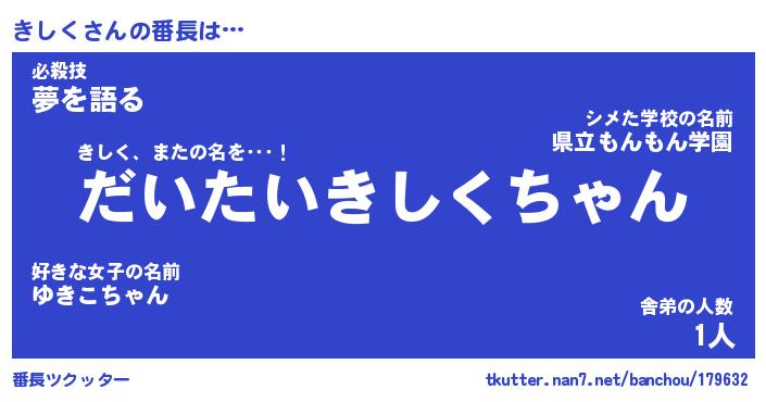 | ヒーロー風カッコイイあだ名 | 『スーパーキシク』『ウルトラきしくマン』 |
