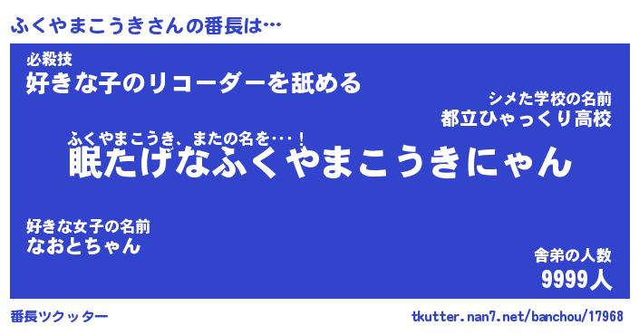 | ピコ太郎風あだ名 | 『フコ四郎』『ピフ一郎』『フク史郎』 |