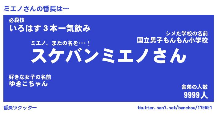 | ヒーロー風カッコイイあだ名 | 『スーパーミエノ』『ウルトラミエノマン』 |