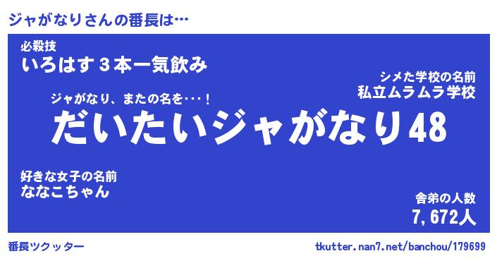 | ヒーロー風カッコイイあだ名 | 『スーパージャガナリ』『炎刃騎士ジャ』 |