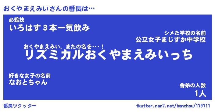 | 欧米人風あだ名 | 『マイケルおくやまえみい』 |