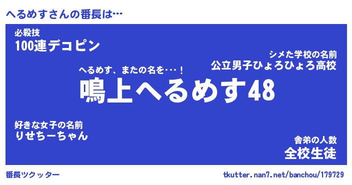 | 意味不明あだ名 | 『ペロリンへるめす』『永久保存へるめす』 |