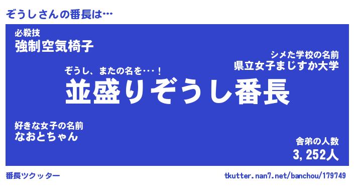 | 肩書あだ名 | 『ぞうし御曹司』『ぞうし国家主席』 |