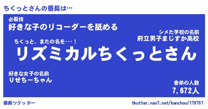 | ヒーロー風カッコイイあだ名 | 『スーパーチクット』『幻影騎士チク』 |