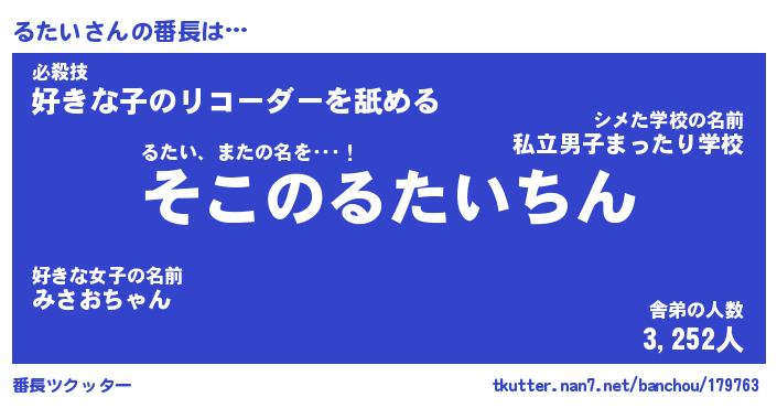 | 意味不明あだ名 | 『ペロリンるたい』『るたいフォーエバー』 |