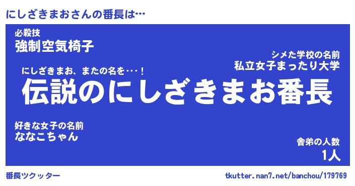 | ポケモン風あだ名 | 『ニシチュウ』『ニシザダネ』 |