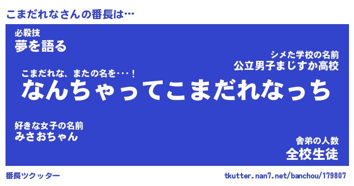 | ポケモン風あだ名 | 『コマチュウ』『コマダダネ』 |