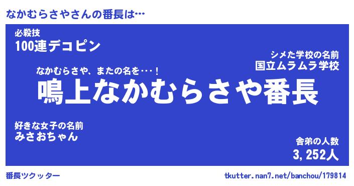 | 2回繰り返すあだ名 | 『なかなか』『ななかか』『ぬらぬら』 |