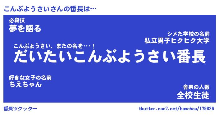 | 伝説のあだ名 | 『不死鳥のスナイパーこんぶようさい』 |